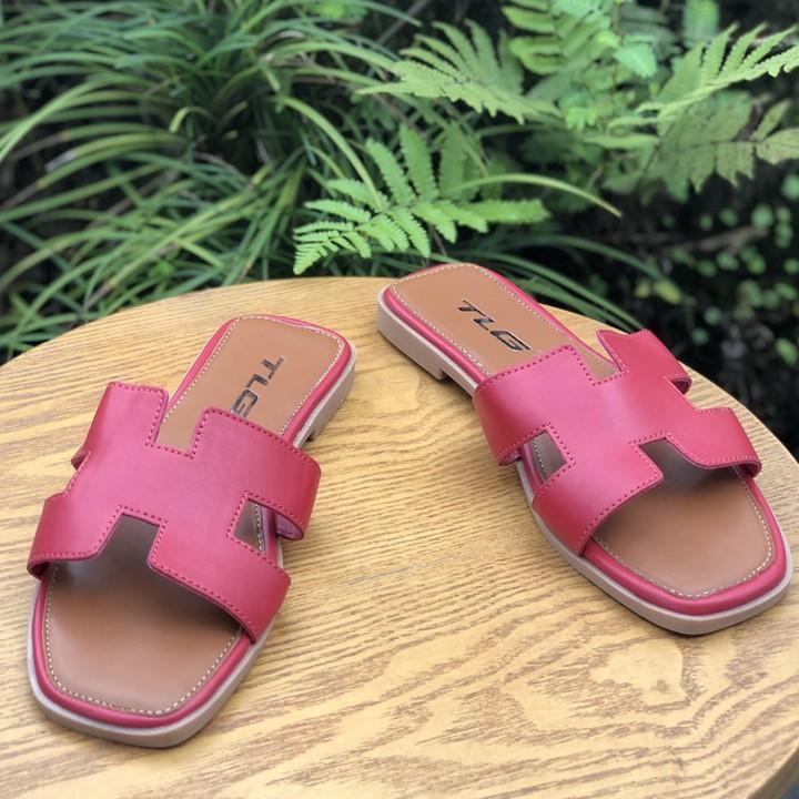 ✨Dép Thời Trang Nữ Da PU Cao Cấp Quai Ngang Chũ H Lót Dép Mềm Êm 21307