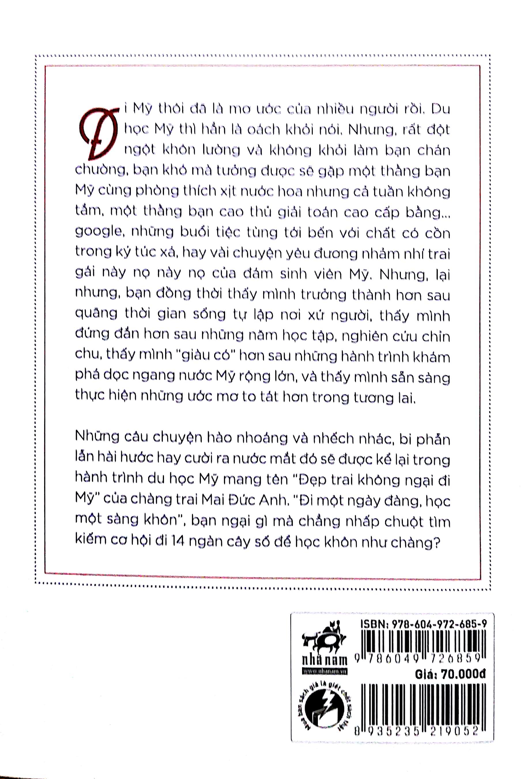 Những câu chuyện hào nhoáng và nhếch nhác, bi phẫn lẫn hài hước hay cười ra nước mắt đó sẽ được kể lại trong hành trình du học Mỹ mang tên “Đẹp trai không ngại đi Mỹ” của chàng trai Mai Đức Anh.“Đi một ngày đàng, học một sàng khôn”, bạn ngại gì mà chẳng nhấp chuột tìm kiếm cơ hội đi 14 ngàn cây số để học khôn như chàng?