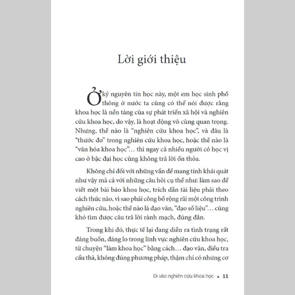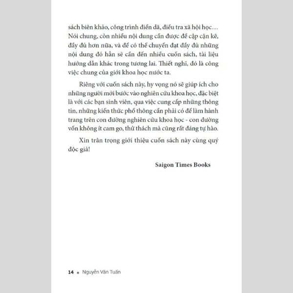 Riêng với cuốn sách này, hy vọng nó sẽ giúp ích cho những người mới bước vào nghiên cứu khoa học, đặc biệt là với các bạn sinh viên, qua việc cung cấp những thông tin, những kiến thức phổ thông cần phải có để làm hành trang trên con đường nghiên cứu khoa học - con đường vốn không ít cam go, thử thách mà cũng rất đáng tự hào.