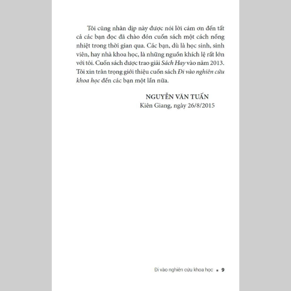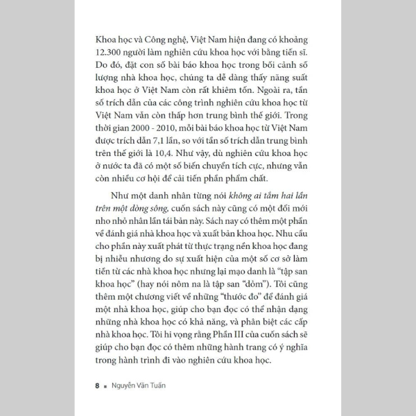 Với mong mỏi được đóng góp một phần nhỏ trong công việc ấy, từ nhiều năm qua, Giáo sư Nguyễn Văn Tuấn, hiện công tác tại Viện nghiên cứu Y khoa Garvan - Úc, đã viết nhiều bài đăng trên các tờ báo trong nước như: Thời báo Kinh tế Sài Gòn, Tuổi Trẻ, Tia Sáng, Thanh Niên, VietNam Net… liên quan đến nghiên cứu khoa học, trên cơ sở cung cấp các kiến thức cũng như những kinh nghiệm làm nghiên cứu khoa học trong nhiều năm của tác giả.