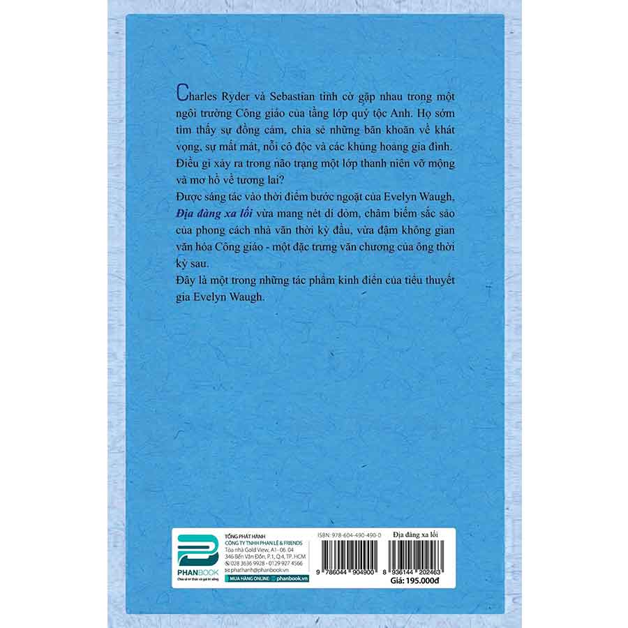 Charles Ryder và Sebastian tình cờ gặp nhau trong một ngôi trường Công giáo của tầng lớp quý tộc Anh. Họ sớm tìm thấy sự đồng cảm, chia sẻ những băn khoăn về khát vọng, sự mất mát, nỗi cô độc và các khủng hoảng gia đình. Điều gì xảy ra trong não trạng một lớp thanh niên vỡ mộng và mơ hồ về tương lai? Được sáng tác vào thời điểm bước ngoặt của Evelyn Waugh, Địa đàng xa lối vừa mang nét dí dỏm, châm biếm sắc sảo của phong cách nhà văn thời kỳ đầu, vừa đậm không gian văn hóa Công giáo - một đặc trưng văn chương của ông thời kỳ sau. Đây là một trong những tác phẩm kinh điển của tiểu thuyết gia Evelyn Waugh. Thông tin tác giả EVELYN WAUGH (1903 - 1966) - Nhà văn người Anh; một trong những tiểu thuyết gia trào phúng xuất sắc nhất thế kỷ 20. Năm 1998, The Modern Library đã xếp Địa đàng xa lối ở vị trí thứ 80 trong danh sách 100 tiểu thuyết tiếng Anh hay nhất thế kỷ 20. Năm 2003, cuốn tiểu thuyết được xếp ở vị trí thứ 45 trong cuộc khảo sát The Big Read của BBC. Năm 2005, The Times bình chọn Địa đàng xa lối là một trong 100 tiểu thuyết tiếng Anh hay nhất từ năm 1923 đến nay. Năm 2009, Newsweek đã liệt kê Địa đàng xa lối là một trong 100 cuốn sách hay nhất của văn học thế giới.