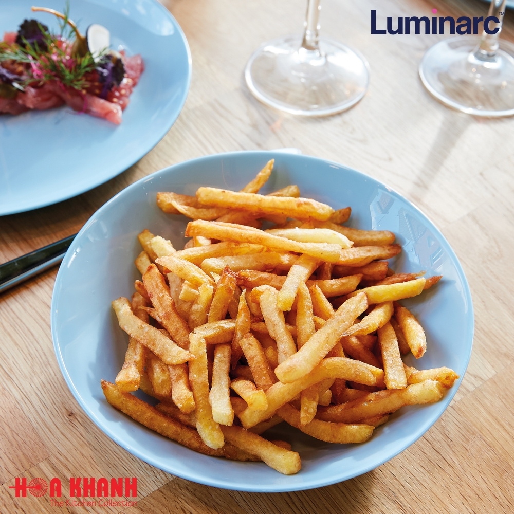 Một điểm nhấn đặc biệt trong bộ sưu tập chén dĩa bàn ăn của Luminarc, chính là dòng sản phẩm chén dĩa thủy tinh có màu - Diwali Light Blue. Vẫn xuất phát từ thủy tinh gốm Opal, màu sắc đã được các nhà sản xuất pha trộn một cách khéo léo từ những giọt màu organic, thân thiện với sức khỏe người tiêu dùng. Mang lại tính thẩm mĩ cao khi phối hợp tone màu xanh sáng hiện đại, thanh lịch và tinh tế - phong cách nổi bật đến từ Pháp. Ngoài ra, cảm giác dễ chịu từ màu xanh sáng mang lại cho không gian bàn ăn sự thoải mái nhưng không kém phần nổi bật.