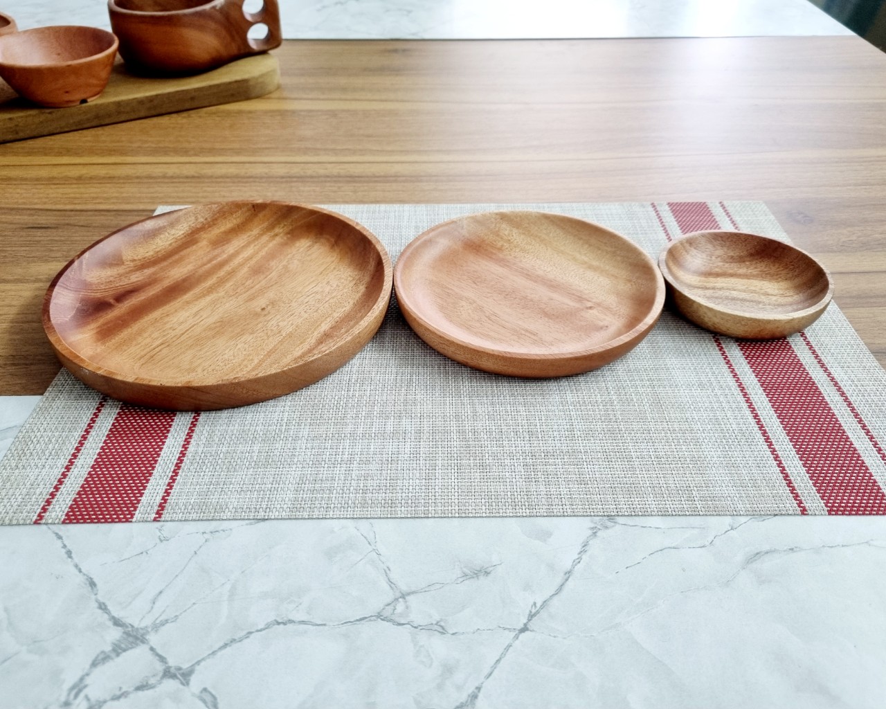 Sản phẩm đĩa tròn được làm từ gỗ thiên nhiên, sơn bằng nước sơn của cây sơn ta ( một loại cây trồng ở miền bắc ), không phải sơn PU hay hóa chất, nên rất an toàn cho sức khỏe