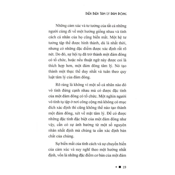 DIỄN BIẾN TÂM LÝ ĐÁM ĐÔNG– một hệ thống lý luận nghiên cứu về tâm lý đám đông từ Charles-Marie Gustave Le Bon, học giả hàng đầu nước Pháp. Các nghiên cứu của ông đã góp phần quan trọng vào việc khai mở cho việc nghiên cứu nhân học nói chung, và nghiên cứu về tâm lý cộng đồng của con người nói riêng.