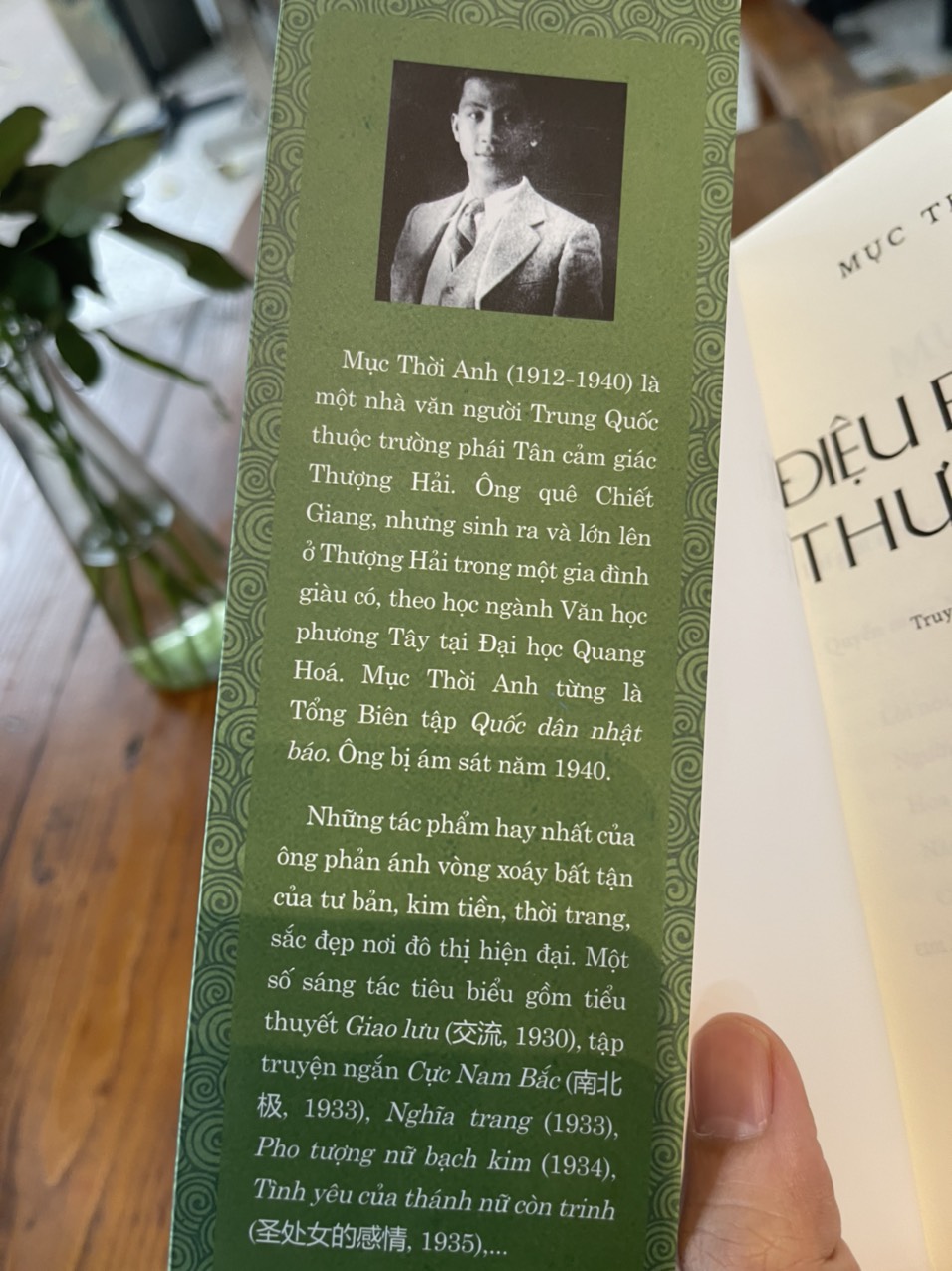 Quay cuổng nhưng không kém phẩn lắng đọng, truyên ngắn của Mục Thời Anh phô bày hình ảnh vể một cuộc sống đa sắc diện, trẩn trụi và chông chênh. Các nhân vật của nhà vǎn họ Mục hiện lên với những nỗi niểm muôn thủa của đời sống đô thị hiện đại. Lời văn tự sự giàu cảm xúc, liên tưởng hoán đổi giác quan đẩy phá cách, kĩ thuật viết đậm tính điện ảnh đã làm nên tên tuổi của Mục Thời Anh trên vǎn đàn Trung Quốc thập niên 1930.