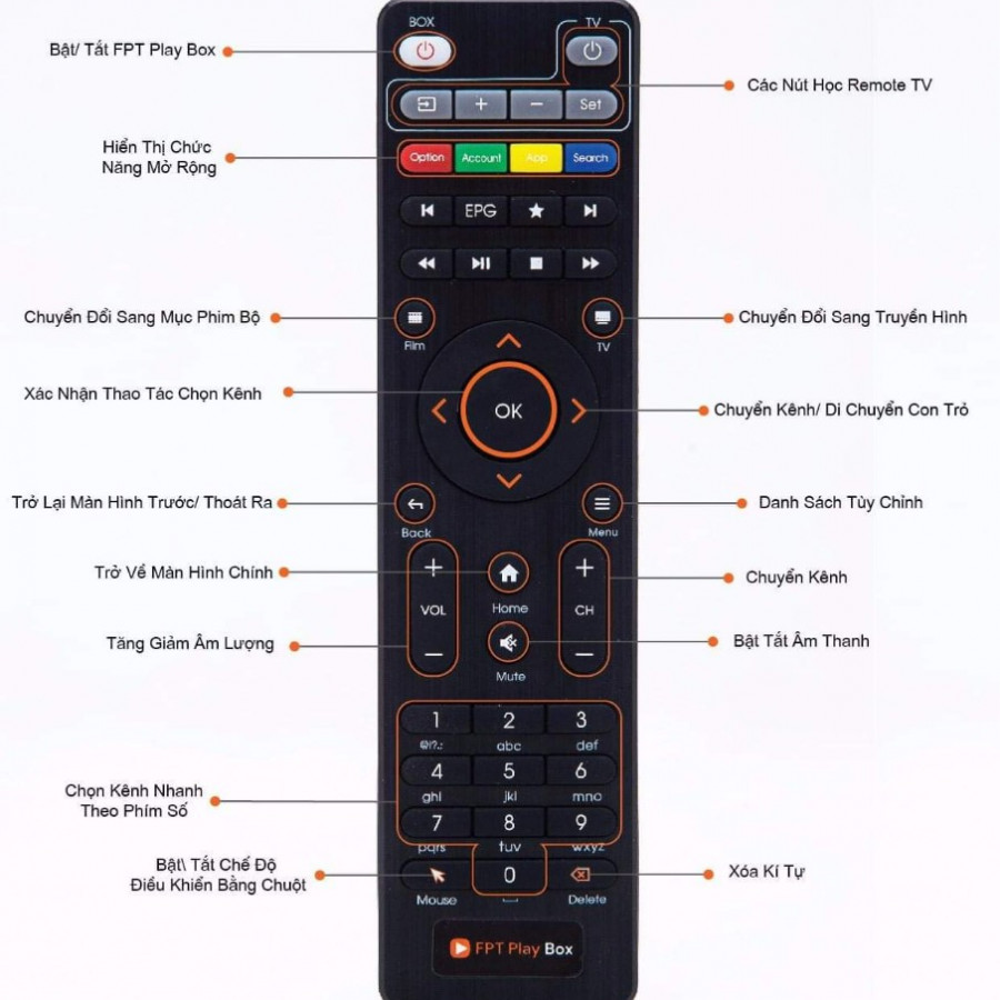 Điều khiển FPT Play Box 2018FPT PLAY BOX 2018phiên bản mới nhất là thiết bị giúp TV của bạn có thể kết nối Internet vàbiến Tivi thường thành một chiếc Smart TVvới những tính năng