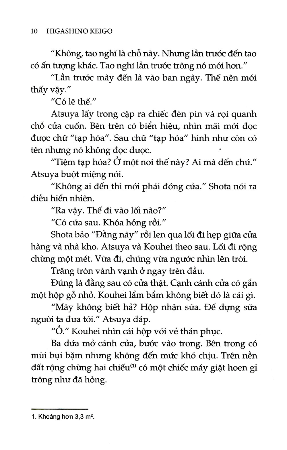 Tài kể chuyện hơn người đã giúp Keigo khéo léo thay đổi các mốc dấu thời gian và không gian, chắp nối những câu chuyện tưởng chừng hoàn toàn riêng rẽ thành một kết cấu chặt chẽ, gây bất ngờ từ đầu tới cuối.