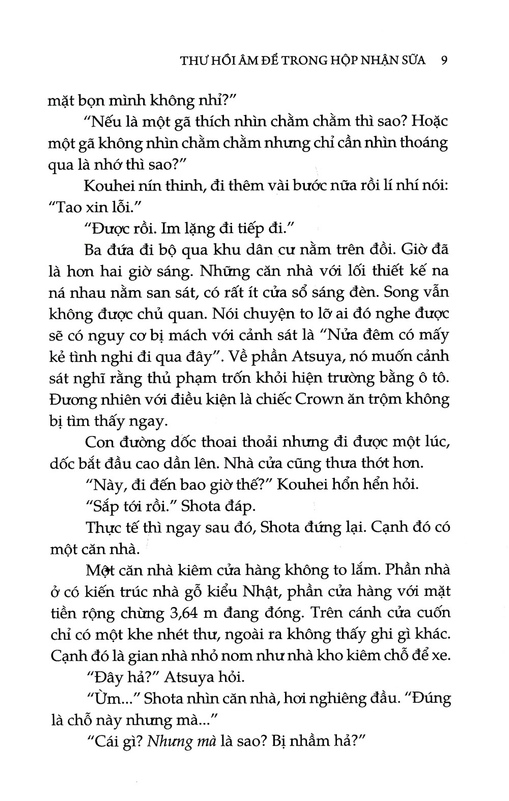 “Đêm vẫn tối. Trên bầu trời, ánh trăng mờ nhạt. Gió thổi lạnh buốt. Cửa buồng Shotaro mở toang mà người thì mất tích. Phải chăng hắn ẩn náu ở bên trong? Hikoroku nhảy vội