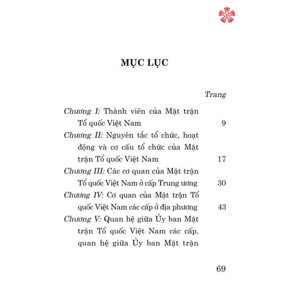 Mua tại TiktokCuốn sách giới thiệu toàn bộ nội dung Điều lệ Mặt trận Tổ quốc Việt Nam được Đại hội đại biểu toàn quốc Mặt trận Tổ quốc Việt Nam lần thứ IX thông qua ngày 20/9/2019.