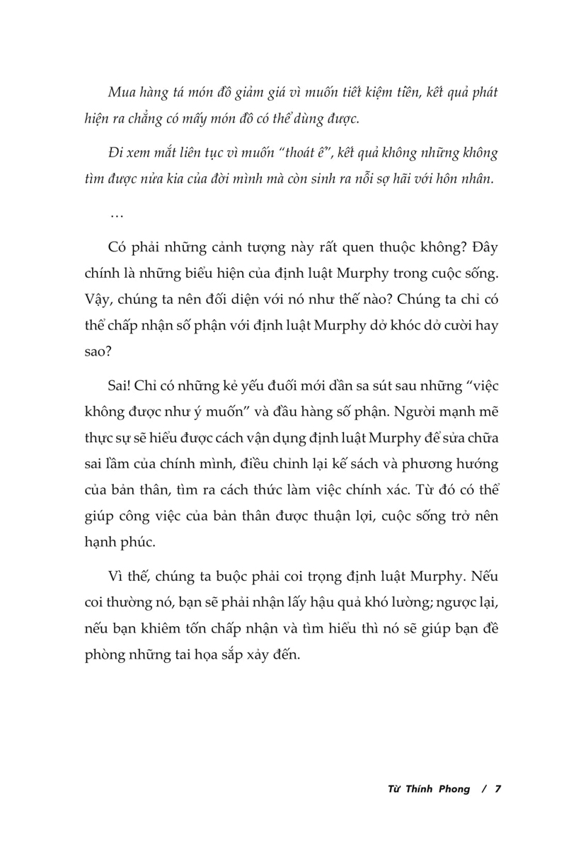 Có phải hằng ngày bạn hay gặp những chuyện dở khóc dở cười tương tự như vậy? Những hiện tượng này đều có thể giải thích bằng một khái niệm tâm lý học thú vị: Định luật Murphy. Nó nhắc nhở chúng ta rằng việc xấu luôn có “cơ may” cao hơn và sai lầm luôn là một phần của thế giới này. Dù cho mỗi chúng ta đều cố gắng hết sức để tránh khỏi sai lầm, nhưng trên thực tế đó là điều bất khả thi.