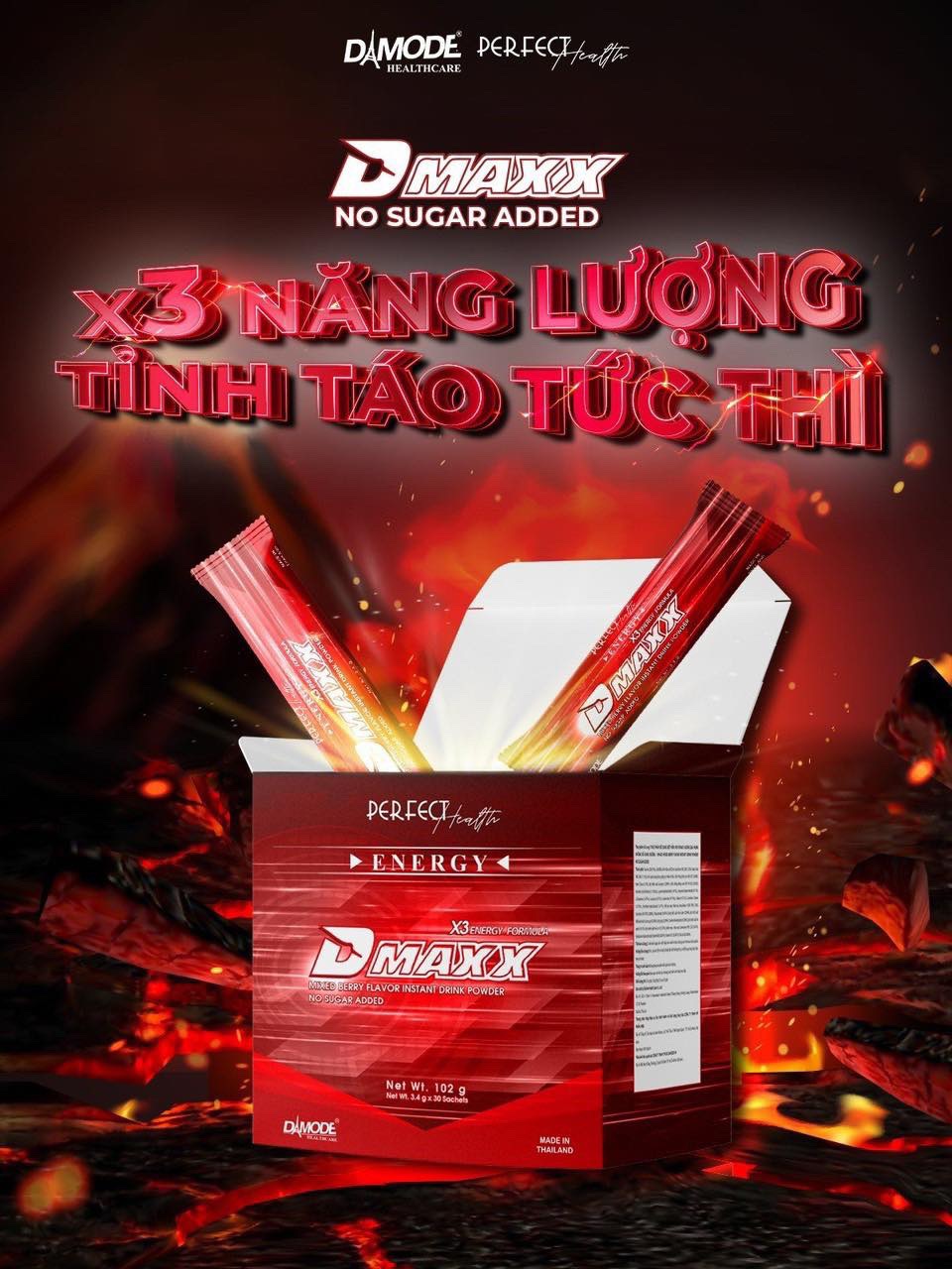 ✨DMAXX thức uống bổ sung vitamin năng lượng không đường DAMODE 22 gói dùng thử màu đỏ