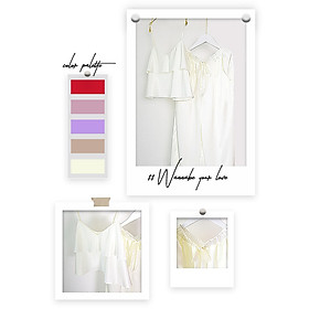 Đồ bộ mặc nhà WANNABE BDS41 đồ bộ quần dài phối áo 2 dây cúp ngực viền ren gợn sóng mang lại vẻ gọn gàng nữ tính Đồ bộ mặc nhà phi lụa cao cấp