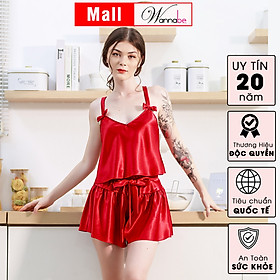 Đồ bộ mặc phi lụa cao cấp WANNABE BSS38 bộ sọt 2 dây cúp 2 lớp tạo độ phồng cúp ngực nữ tính trẻ trung năng động Đồ bộ mặc nhà phi lụa cao cấp