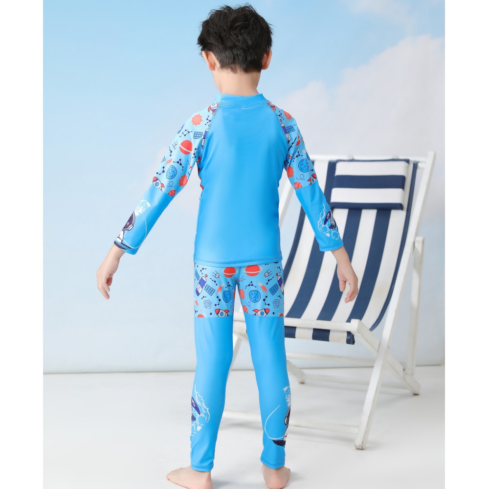 Đồ bơi bé trai họa tiết khoa học vũ trụ tay dài quần dài chống nắng cho bé Đồ bơi bé trai rời quần dài áo dài tay chống nắng, chất vải mềm mại, họa