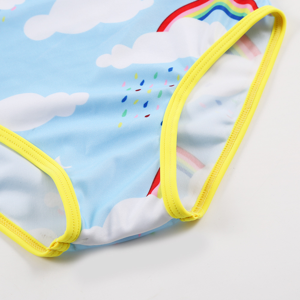 Đồ bơi bé gái liền thân dài full body chống nắng, chất vải mềm mại, họa tiết kỳ lân rất được các bé yêu thích. Chất liệu vải thun co dãn tốt, thoát nước nhanh