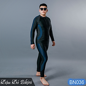 ✨Đồ bơi nam cỡ đại đến 130kg, quần áo tắm big size cho người béo mập, áo dài tay khoá kéo & quần dài chống nắng, chất thun bơi lạnh Hàn co giãn đa chiều | BN036