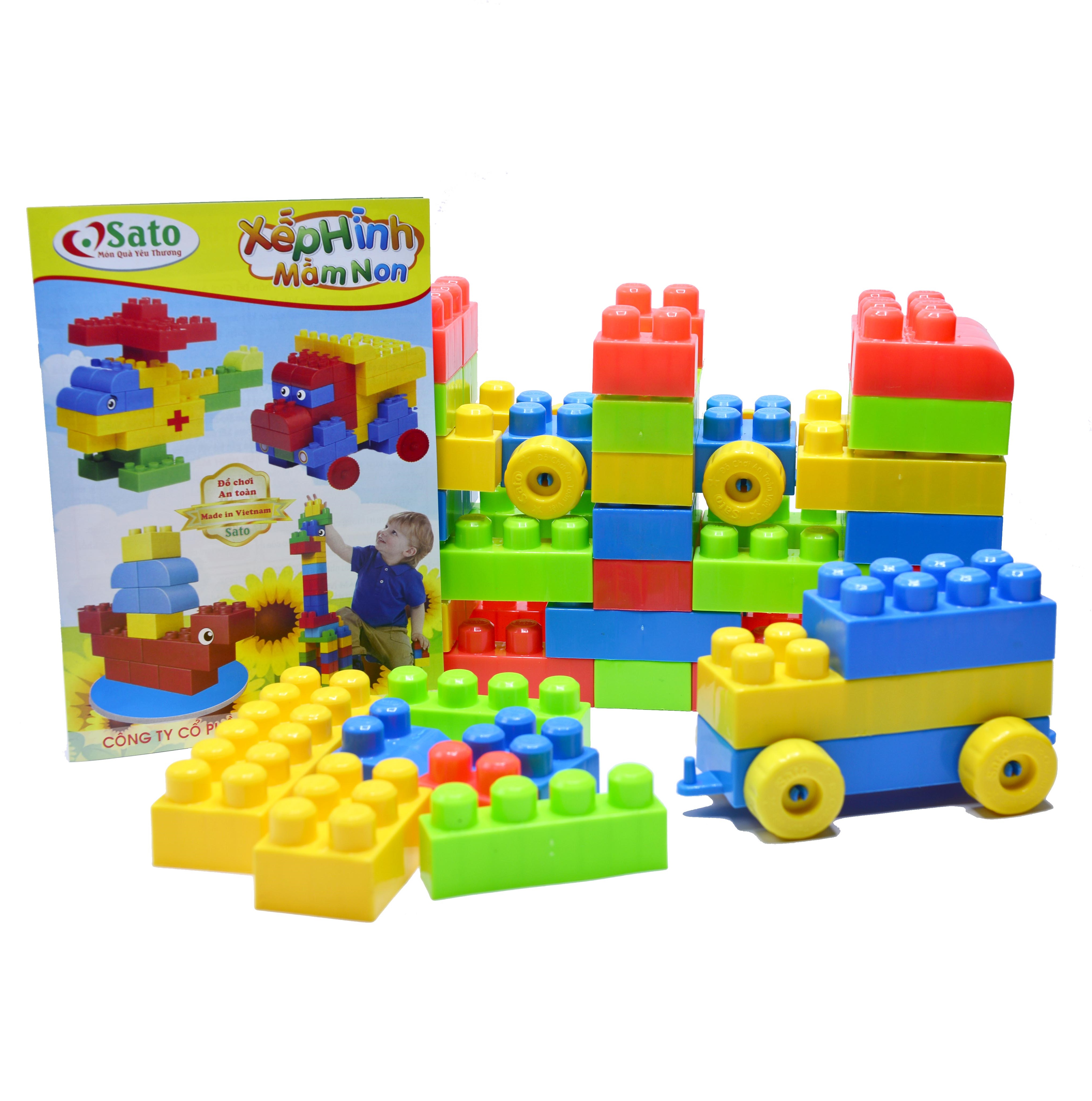 Đồ chơi xếp hình lego chính hãng Sato 72 chi tiết cỡ to bằng nhựa ABS an toàn cho bé lắp ghép