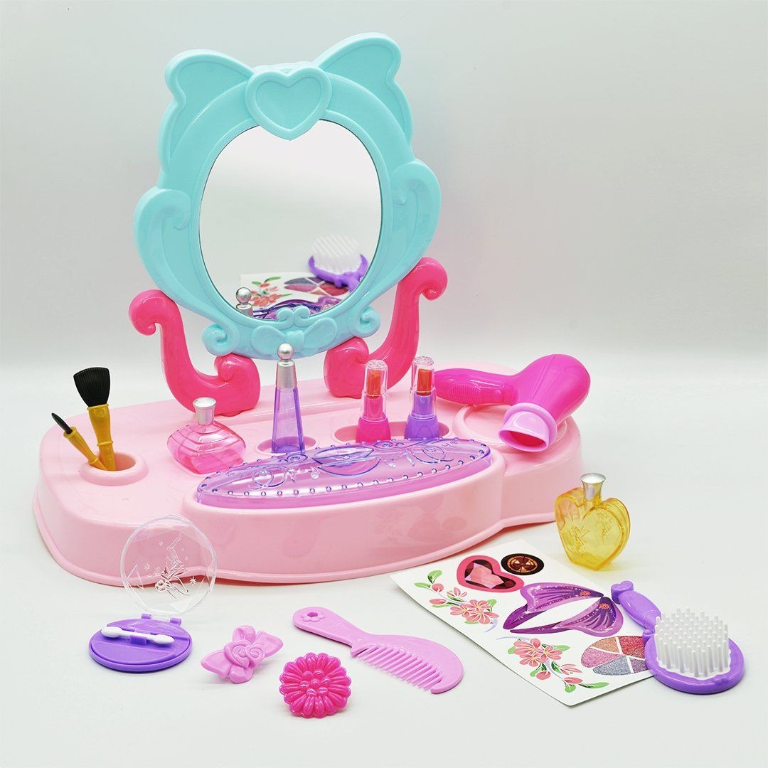 Với chiếc bàn trang điểm cực xinh cho bé yêu thích làm đẹp . Với thiết kế chắc chắn, màu sắc tươi tắn, chiếc bàn trang điểm này chắc chắn sẽ mang đến cho bé những giây phút vui chơi bổ ích.