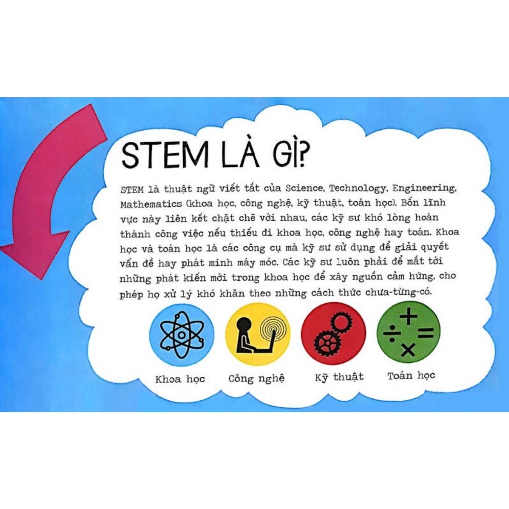 STEAM là phương pháp dạy tích hợp 5 bộ môn Science (Khoa học) Technology (Công nghệ) Engineering (Kỹ thuật) Art (Nghệ thuật) Math (Toán học) thông phương pháp học thực hành mà cụ thể như hình dưới