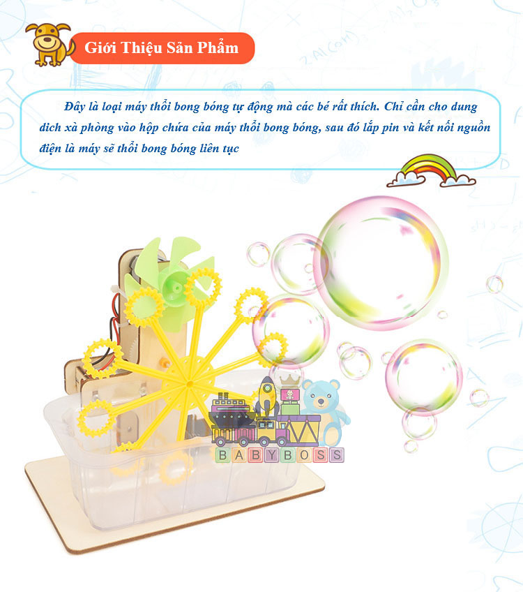 Đồ Chơi Khoa Học Tự Làm, Đồ Chơi Lắp Ghép STEM, Đồ Chơi Gỗ Cao Cấp Khoa Học Tự Làm DIY Wood Steam Máy Thổi Bong Bóng Tự Động
