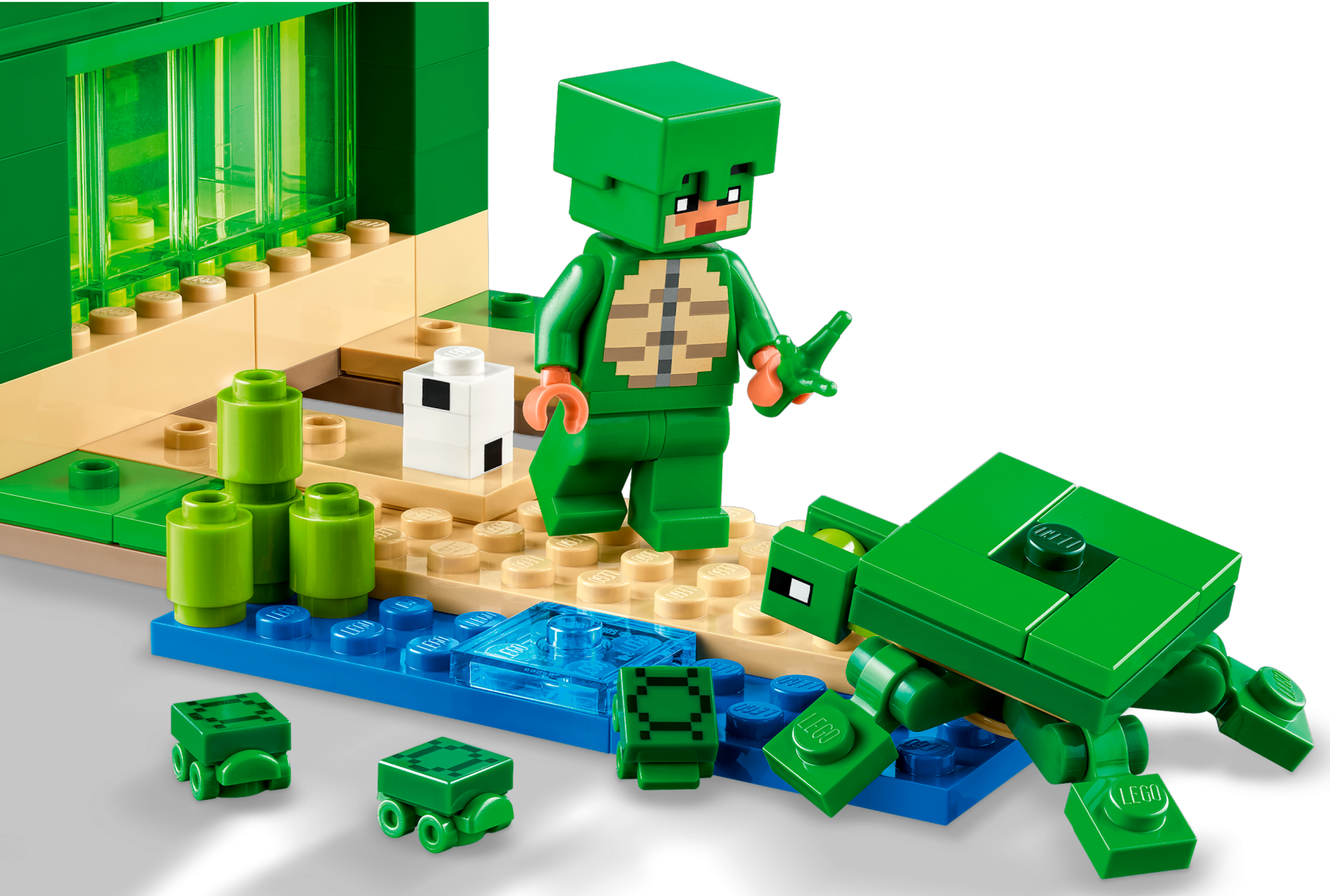 Cùng xây dựng ngôi nhà cho những chú rùa trên hòn đảo Minecraft với bộ Đồ chơi lắp ráp Ngôi nhà rùa biển. Bộ trò chơi gồm 1 bãi biển thu nhỏ nơi bạn có thể cho Rùa ăn, bên cạnh đó bãi biển cũng là nơi để chú rùa ấp trứng. Cùng bảo vệ bãi biển và những quả trứng khi Thây Ma Chết Đuối đổ bộ, bạn có thể nhảy lên một chiếc bè tre và chèo thuyền đến cuộc phiêu lưu tiếp theo.