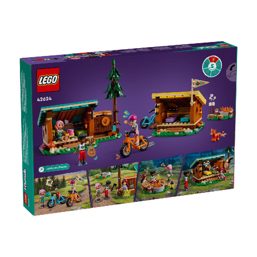 Bộ đồ chơi LEGO Friends Nhà gỗ cắm trại (42624) dành cho trẻ em từ 7+ tuổi đi kèm với 3 nhân vật, một chú cáo và rất nhiều phụ kiện đồ chơi cắm trại để các bé có thể tận hưởng những cuộc phiêu lưu thú vị.