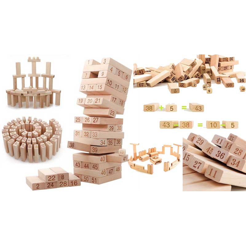 Rút gỗ số thông minh 48 thanh loại to Domino gỗ cho bé