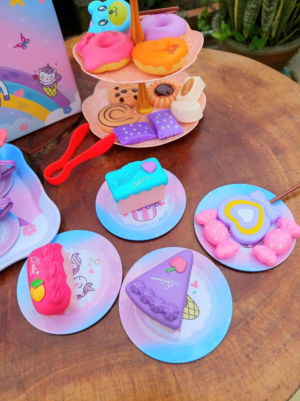 - Bộ đồ chơi tiệc trà bánh họa tiết đáng yêu có kiểu dáng thiết kế ngộ nghĩnh, đáng yêu, màu sắc bắt mắt.