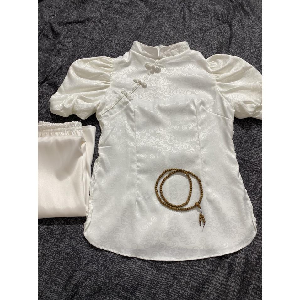 Bộ pháp phục, quần áo đi chùa màu trằng lụa gấm hai da #dolamdichua #phapphuc #quanaodichua