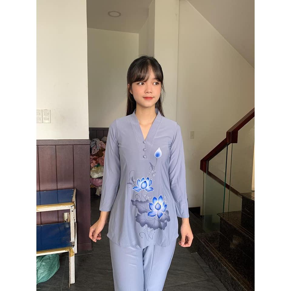 THÔNG TIN SẢN PHẨM Đồ Lam Nữ Đi Chùa SJ20 Trang Nhã Kín Đáo Dành Cho Phật Tử THÊU Công Ngọc Cao Cấp CHẤT LIỆU : VẢI SATIN LỤA (MẶC MÁT VẢI CO GIÃN NHẸ)