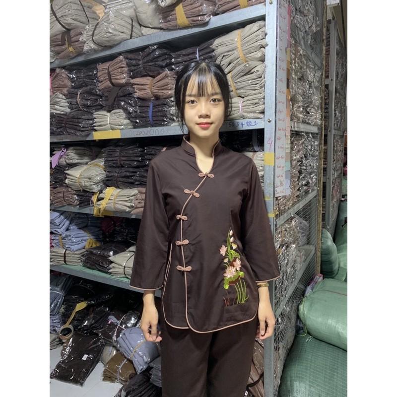 Đồ lam đi chùa - Quần áo đi chùa - Đồ lam phật tử - Bộ đồ đi lễ chùa thêu sen cổ tàu (Ảnh + Video shop tự quay) Bộ đồ lam phật tử