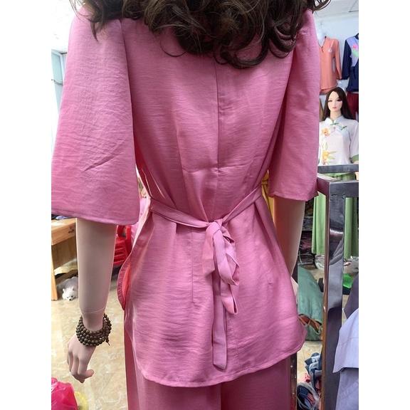 Quần áo phật tử, đồ lam đi chùa mẫu lụa đính bướm A53, shop Hồng Phúc An