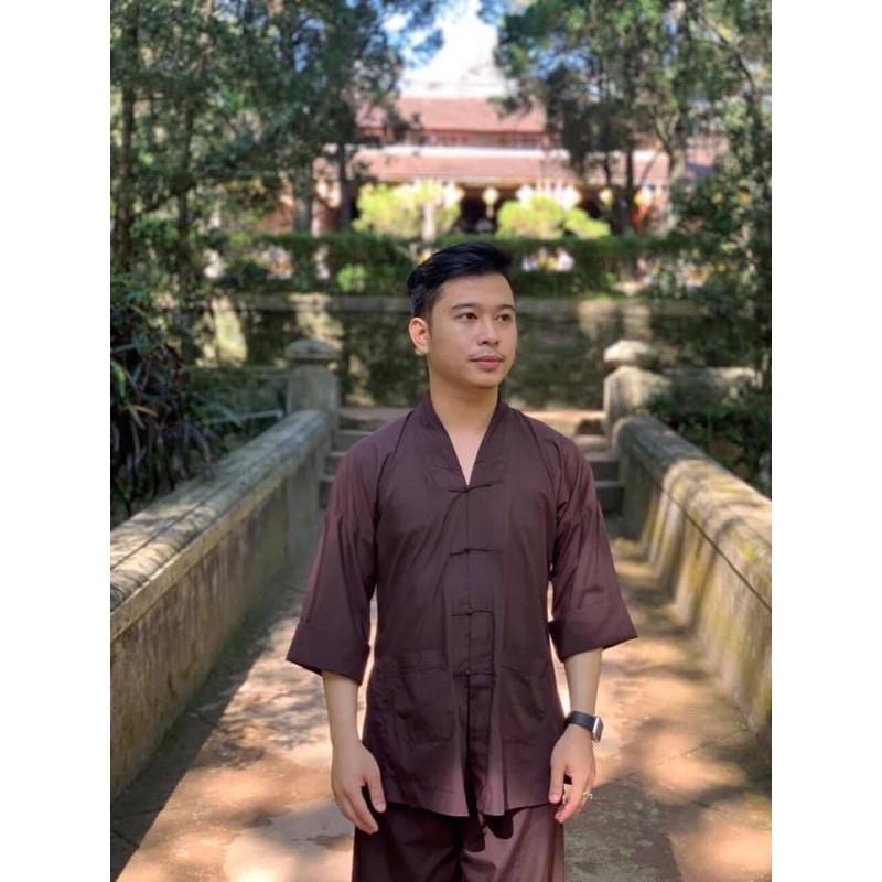 Áo choàng áo Pháp phục - áo tràng khoác ngoài dành cho Phật tử màu nâu lam giá rẻ - áo lam đi chùa