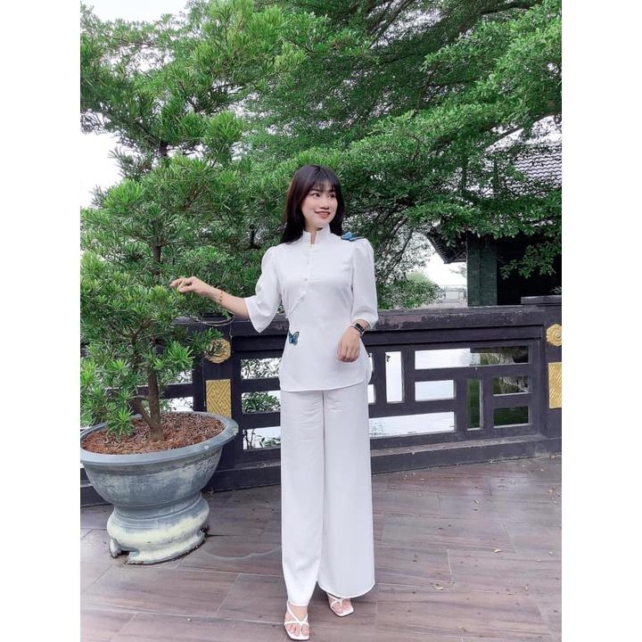 sét bộ đồ nữ quần ống suông rộng phối áo thêu hoa mặc ơ nhà đi chơi duyên dáng mẫu mới siêu hot có bigsize đẹp xuất sắc Màu sắc: y hình Size : M