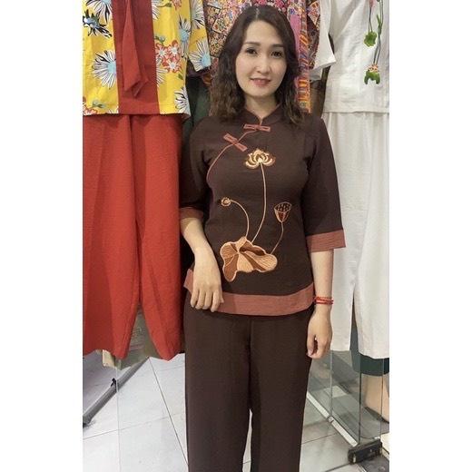 Mẫu pháp phục nữ - quần áo Phật tử đi chùa, đồ lam chất kate lụa mềm có co giãn Sen Hồng 0898553583