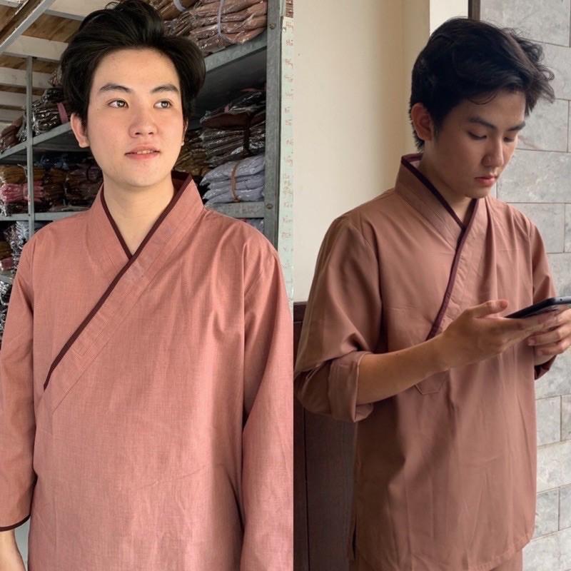 Quần áo cư sĩ nam - đồ lam đi chùa Phật tử nam - pháp phục Sen Hồng