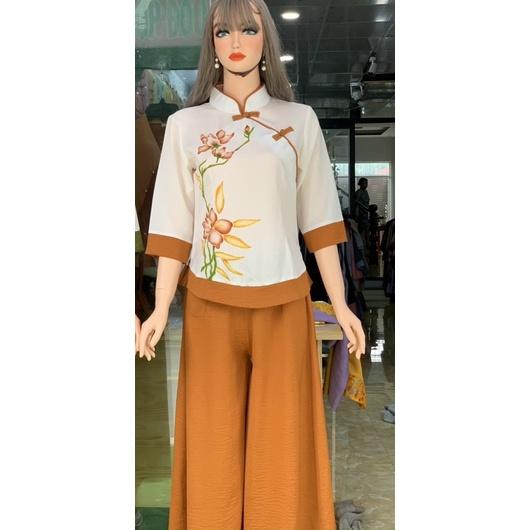 Quần áo phật tử, đồ lam đi chùa mẫu 01 nút thêu sen #fashion