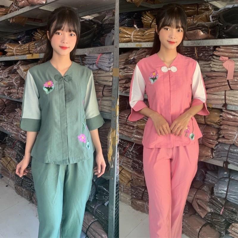✨Đồ Lam Đi Chùa # Tim 1Nút Bông Cao Cấp# Quần Áo # Đồ Bộ Nữ