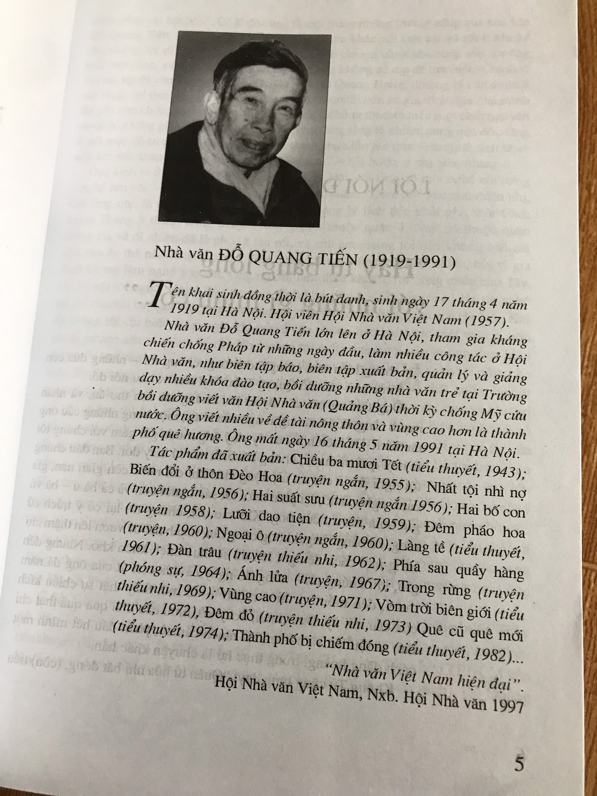 Nhà văn Đỗ Quang Tiến (tên khai sinh và bút danh) sinh ngày 17/4/1919 tại Hà Nội, hội viên sáng lập Hội Nhà văn Việt Nam (1957). Ông lớn lên ở Hà Nội, tham gia kháng chiến từ ngày đầu, làm nhiều công tác ở Hội Nhà văn. Ông viết nhiều về đề tài nông thôn và miền núi hơn là thành phố quê hương.