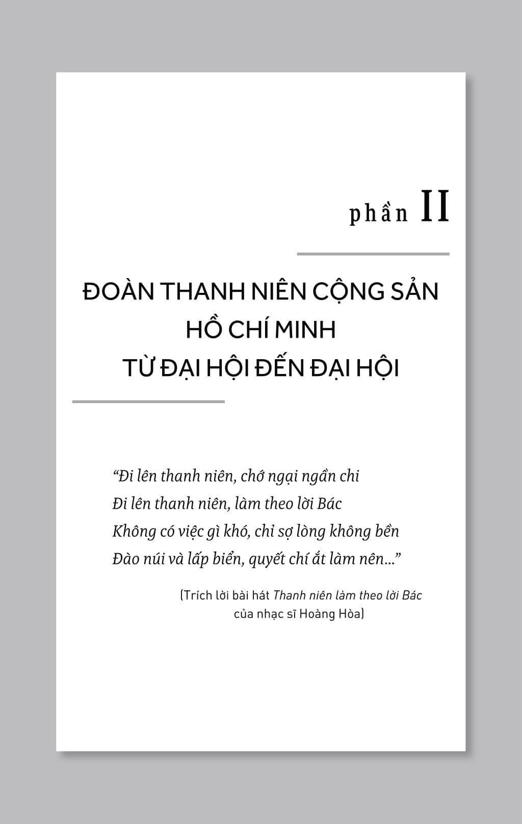 Mua tại TiktokSách giới thiệu về lịch sử Đoàn qua từng mốc Đại hội Đoàn toàn quốc từ những ngày mới thành lập cho đến ngày nay. Độc giả khi lật giở từng trang sách sẽ có thể nhìn thấy được quá trình đấu tranh và phát triển của Đoàn ta, qua mỗi kỳ Đại hội lại là một bước phát triển vượt bậc trong sự nghiệp cách mạng và kiến thiết nước nhà, bên cạnh đó là những phong trào, những nhân vật, sự kiện tiêu biểu ghi dấu vào lịch sử.
