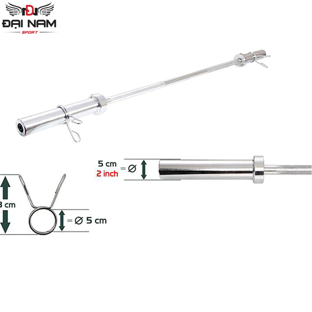✨Đòn Tạ Dài 2m2 Inox Phi 50 (Nặng 20kg) Nhập Khẩu Đại Nam Sport + Kèm 2 Khóa Tạ