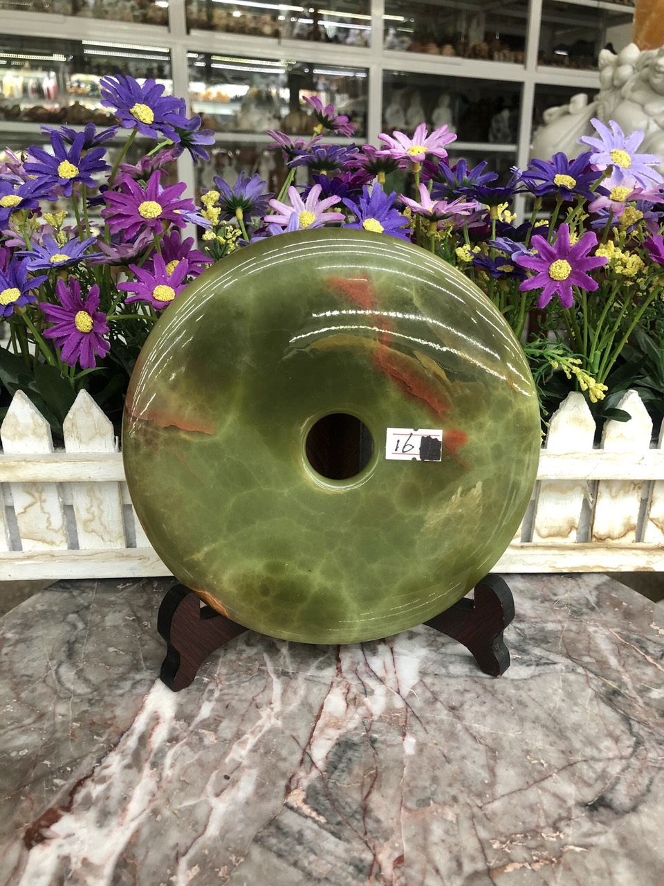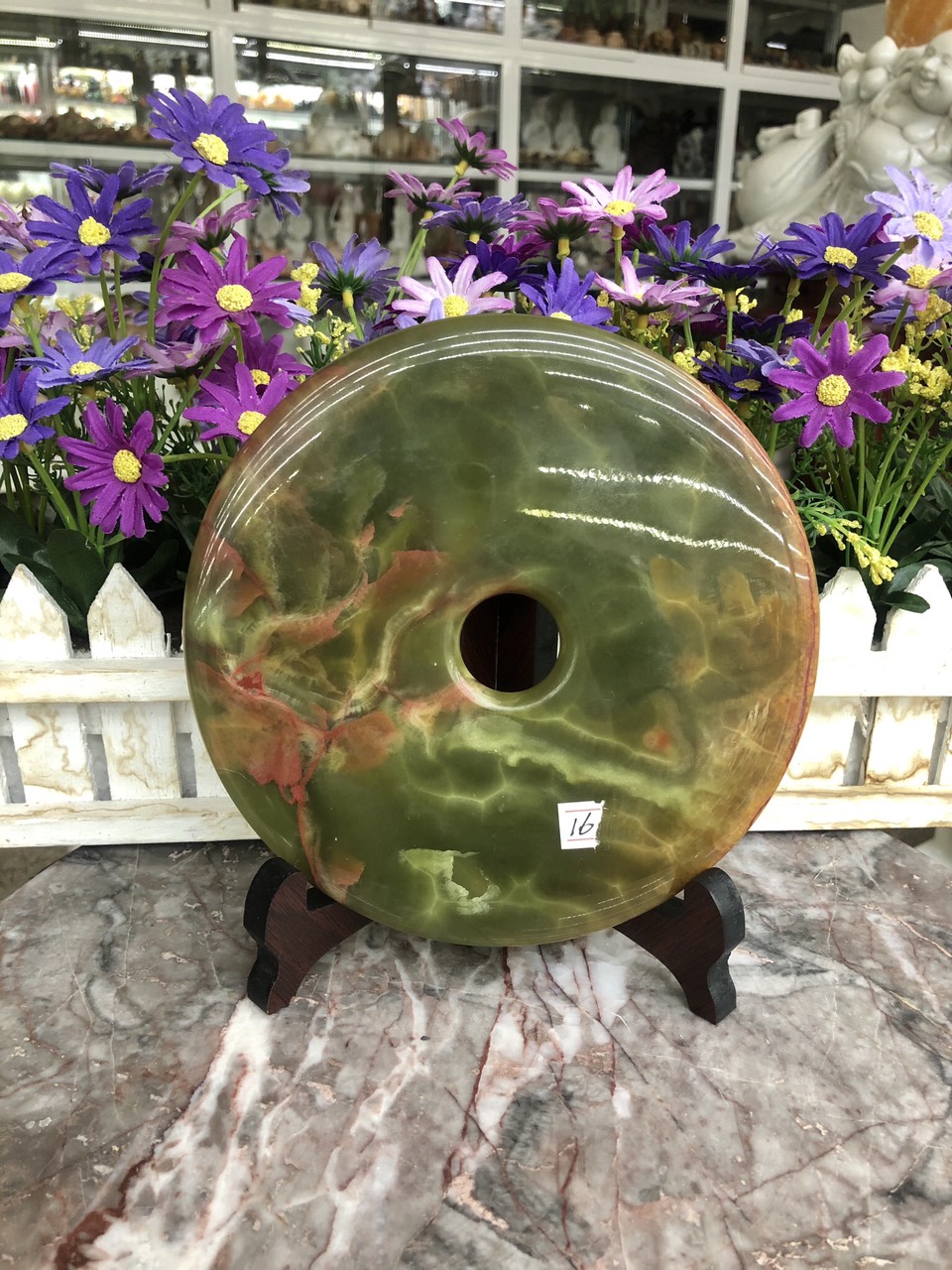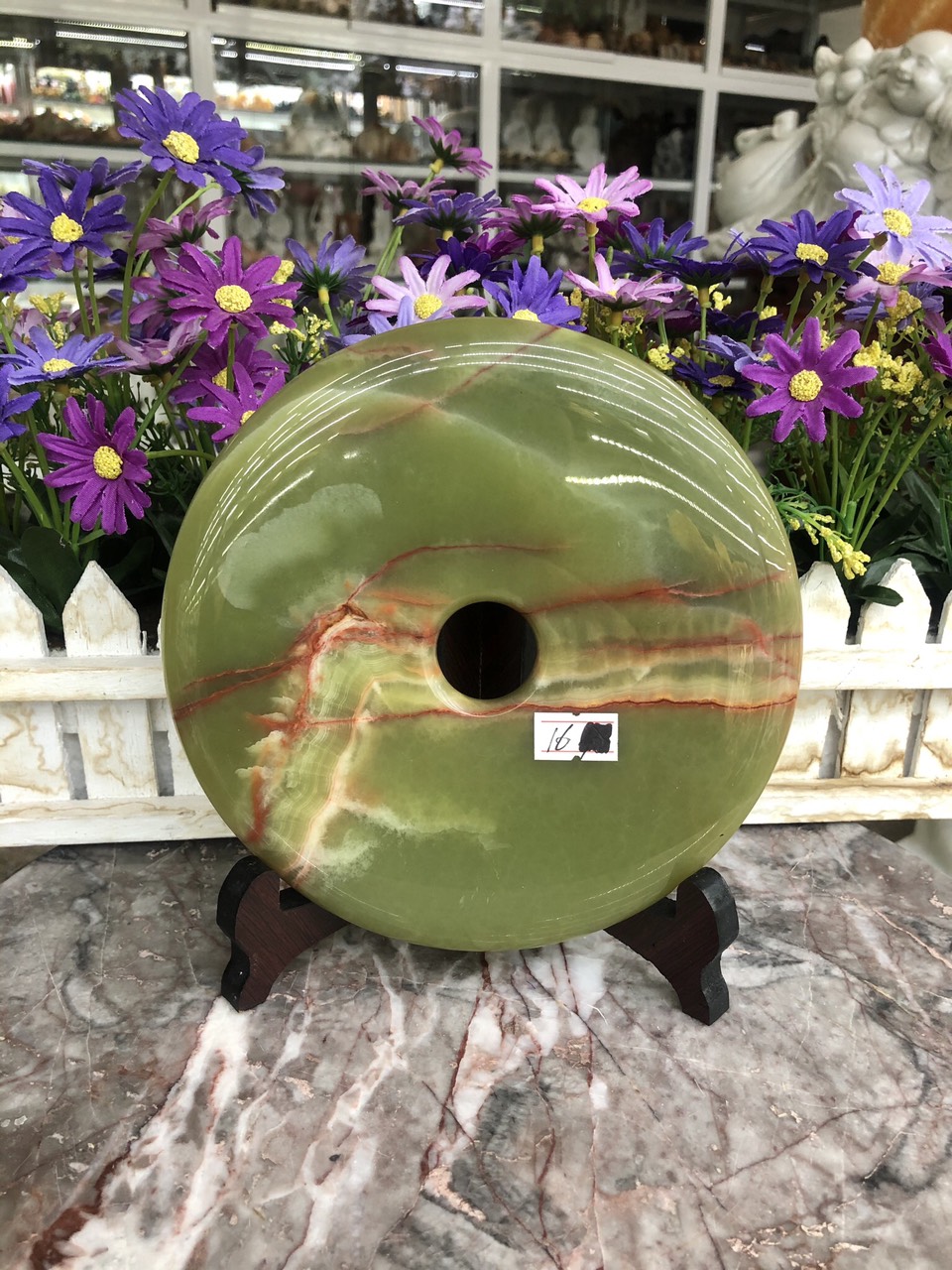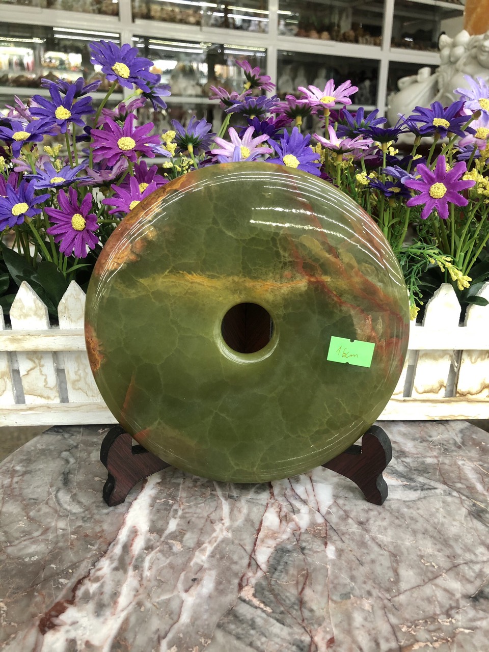 Mua tại TiktokKích thước: Đường kính 16 cm Khối lượng: 840g Chất liệu: Đá ngọc Onyx