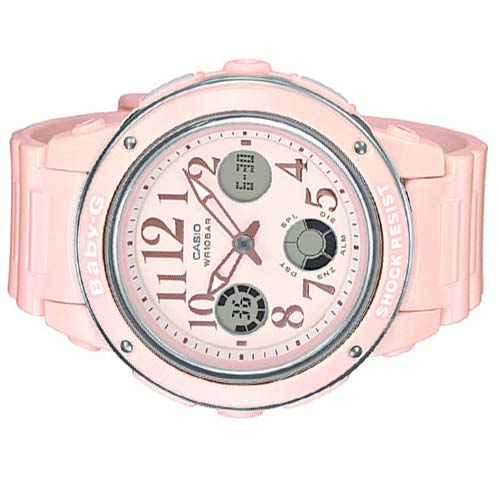 Từ dòng BGA-150 mặt to phổ biến đã xuất hiện các mẫu mới với số Ả Rập tuyệt vời cho bốn vạch giờ. Mẫu màu hồng nhạt và trắng kết hợp vạch giờ số Ả Rập màu vàng hồng mang đến họa tiết màu sắc nữ tính và thanh lịch. Ba mặt số cung cấp thông tin về ngày tháng, Giờ thế giới, đồng hồ bấm giờ và nhiều hơn nữa.