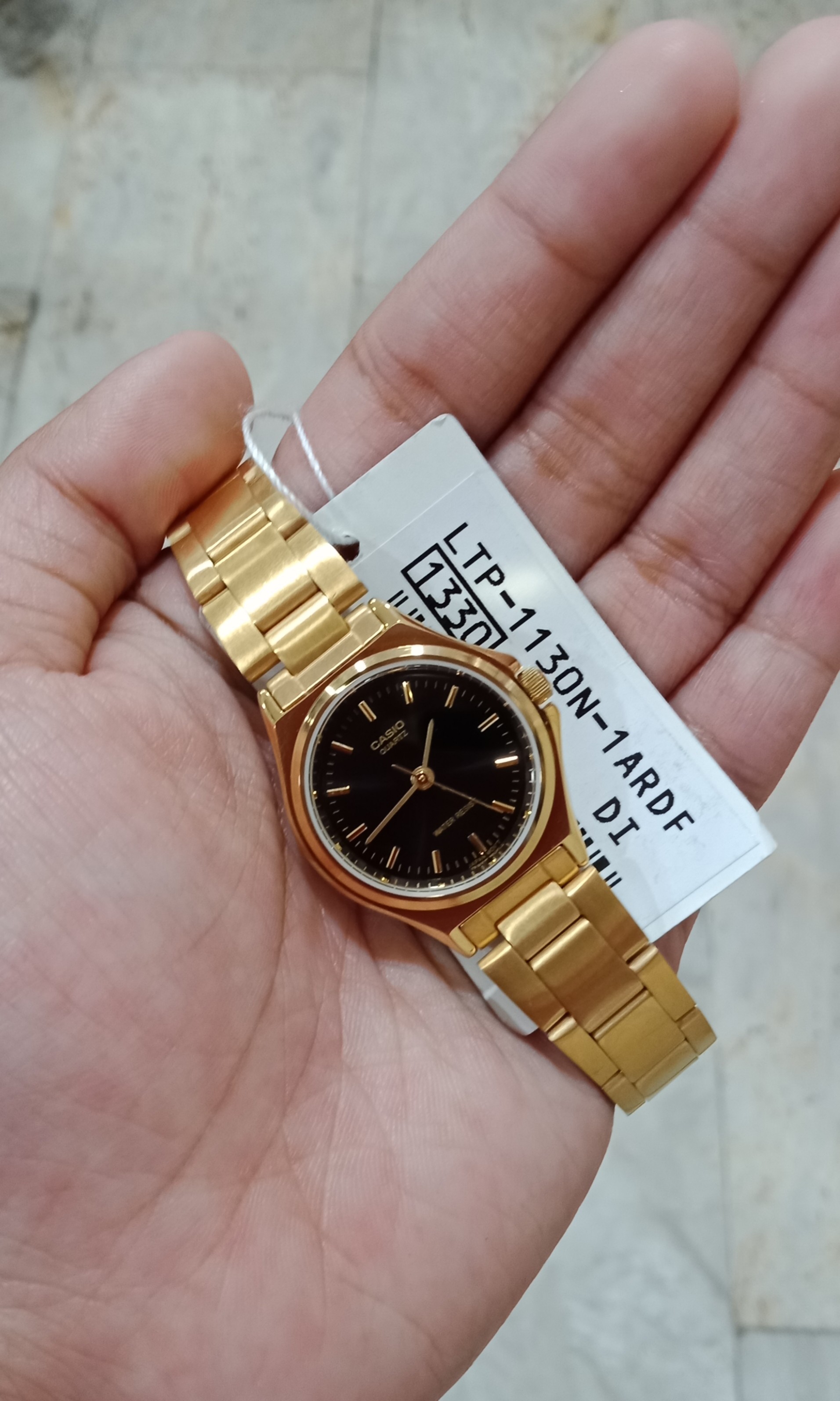 Review đồng hồ Casio LTP-1130N-1ARDF mặt số đen size 27mm nền cọc vạch số mạ vàng