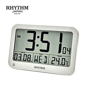 Đồng hồ điện tử Rhythm LCT084NR19, sử dụng 3 pin AA. Vỏ nhựa cao cấp sơn nhũ bạc, kích thước 22.4 x 15.0 x 1,8cm nặng 320g. Màn hình điện tử hiển thị lịch ngày