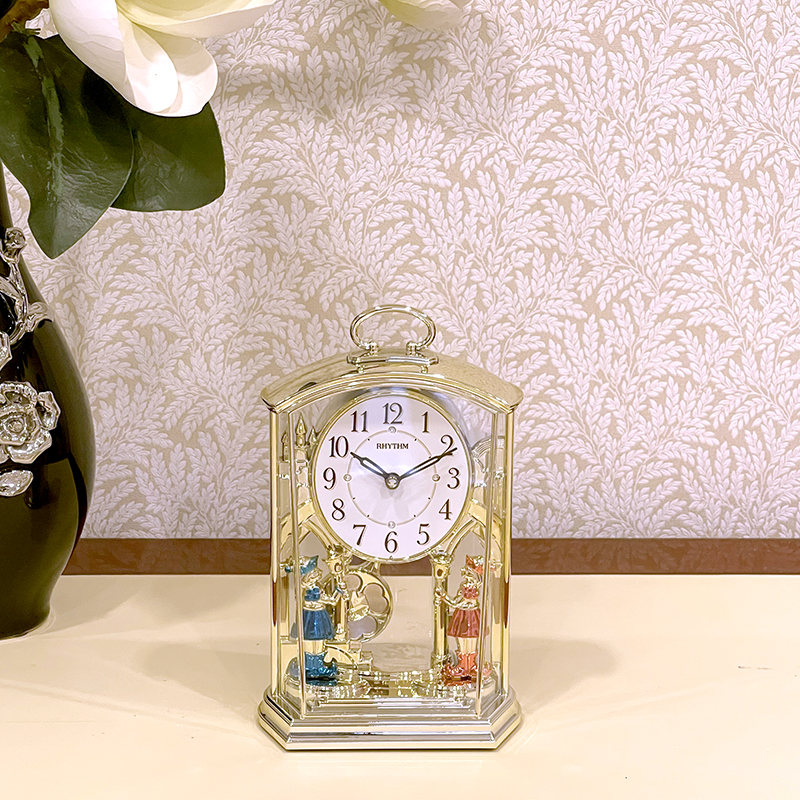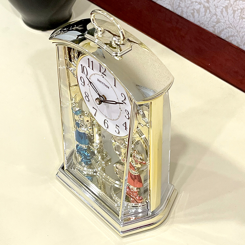 Đồng hồ để bàn Nhật Bản Rhythm 4RP796WS18, dùng pin (AAx2), vỏ nhựa cao cấp mạ vàng kết hợp mica trong suốt nhìn xuyên thấu, Kích thước 14.0 x 22.8 x 8.3cm, trọng lượng 390g. Quả