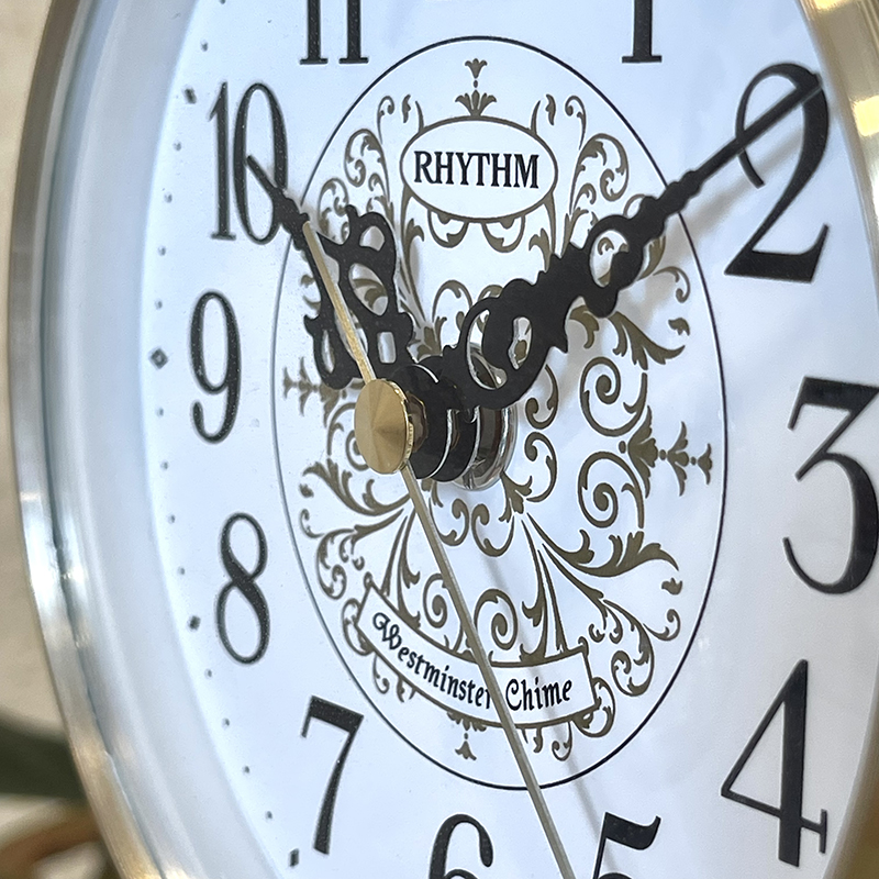 Đồng hồ để bàn nhạc Rhythm CRH269NR18 – Kt 13.8 x 23.1 x 12cm, 850g. Vỏ kim loại kết hợp Polyresine, Dùng 2 pin AA ( AA x 2 ), Âm thanh thính phòng SIP (sound in palace) với 16 bản nhạc cổ điển, 3 bản giáng sinh (4×4 Melodies & 3 X-mas Songs) , Nhạc nhà thờ Westminter 15, 30, 45 phút dạo nhạc và gõ điểm giờ mỗi đầu giờ. Núm chỉnh âm lượng tiện lợi, chức năng ngưng nhạc đêm từ 23:00 đến 5:45 sáng. phát nhạc mỗi đầu giờ. Kính mo cong trong suốt.