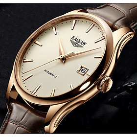 Mua tại TiktokĐồng hồ nam chính hãng Kassaw Thụy Sỹ Thiết kế sang trọng, đẳng cấp cho quý ông Thời gian trữ cót lâu lên đến 40h Chống nước 5ATM, Kính sapphire Toàn bộ máy được làm từ thép không gỉ 316L Đồng hồ cơ Automatic, Sử dụng bộ máy Seiko Nh35A Chính hãng