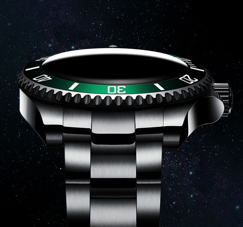 Các tính năng - Bộ ghi thời gian kim quay ngược - Đồng hồ bấm giờ - Khả năng chống nước ở độ sâu 100 mét - Hiển thị ngày - Dây đeo bằng thép
