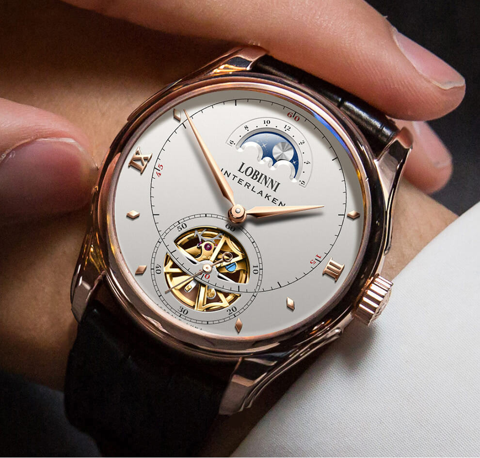 Đồng hồ nam chính hãng LOBINNI Thụy Sỹ Thiết kế sang trọng, đẳng cấp cho quý ông Thời gian trữ cót lâu lên đến 40h Chống nước 5ATM, Kính sapphire Toàn bộ máy được làm